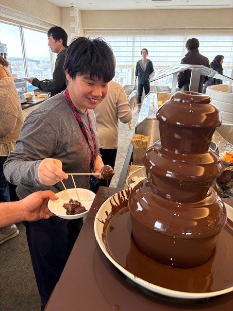 昼食は美味しいバイキング。ラーメン、カレー、ケーキはもちろん、チョコレートフォンデュや自分で作るパンケーキなどもあり、それぞれ大好きな食べ物を沢山頂く事が出来ました🍴